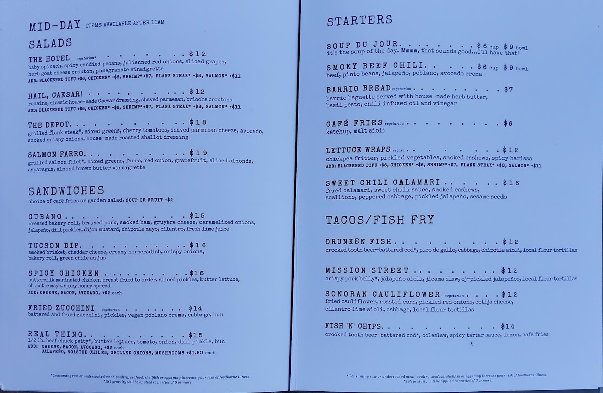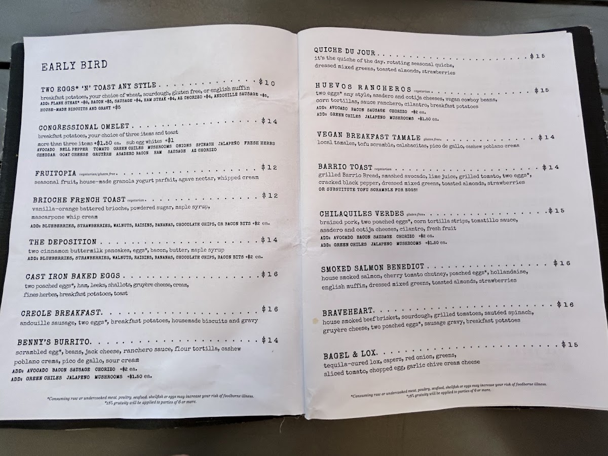 This menu is suitable for casual dining occasions ranging from breakfast and brunch to evening meals. Visitors can expect a mixture of quick orders and more substantial meals, accommodating both lighter snacks and full-course dining experiences.